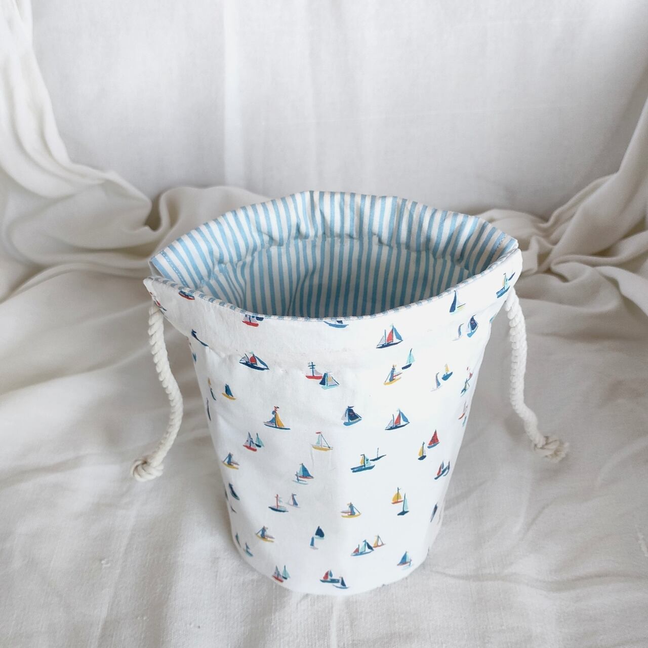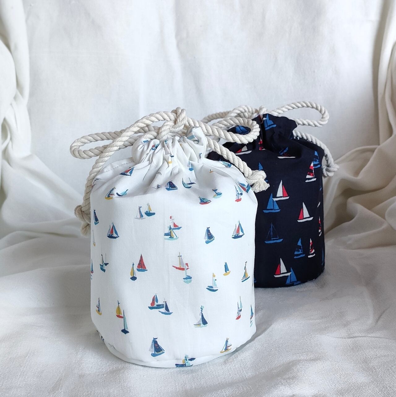 リバティプリント骨壷カバー 風のヨット ホワイト