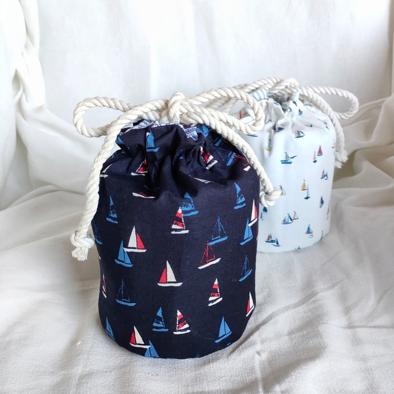 内布はブルーのストライプ、口を絞るのはリボンじゃなくてロープにしてみました。
