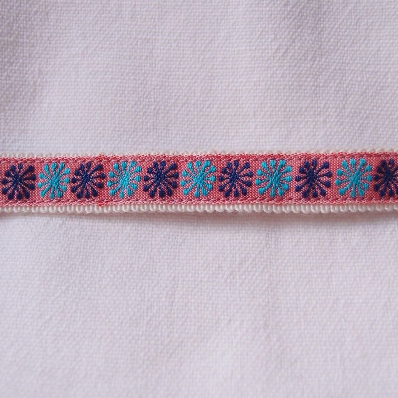 こちらはややくすんだピンク地にターコイズブルーとネイビーの綿毛です。