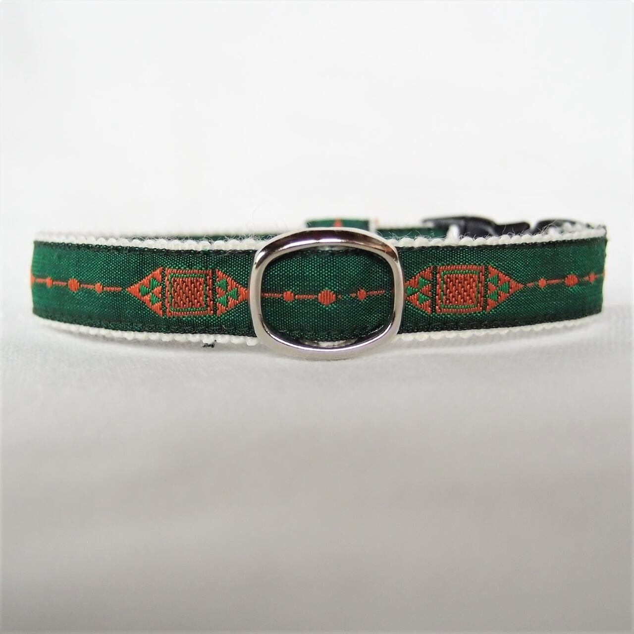 こちらはフォレストグリーンにオレンジの刺繍。正統派のイメージです。