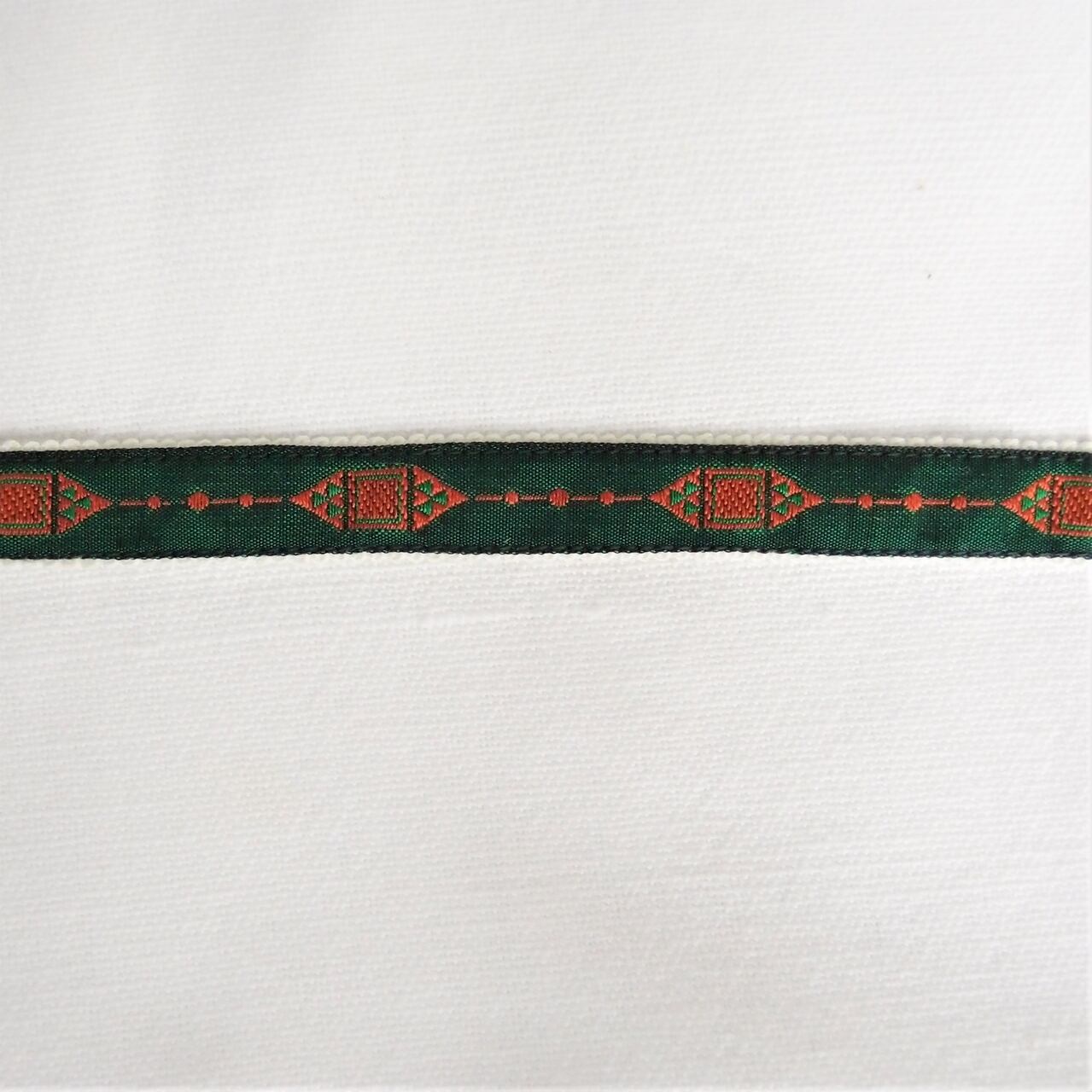 品の良くうっすら光沢のある生地にドミノのような柄のダイヤモンドが機械刺繍されています。