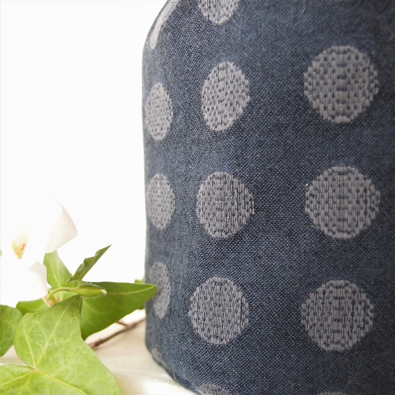 こちらはチャコールグレーのスラブコットン生地にグレーの糸でふっくらと月のような円が機械刺繍されています。