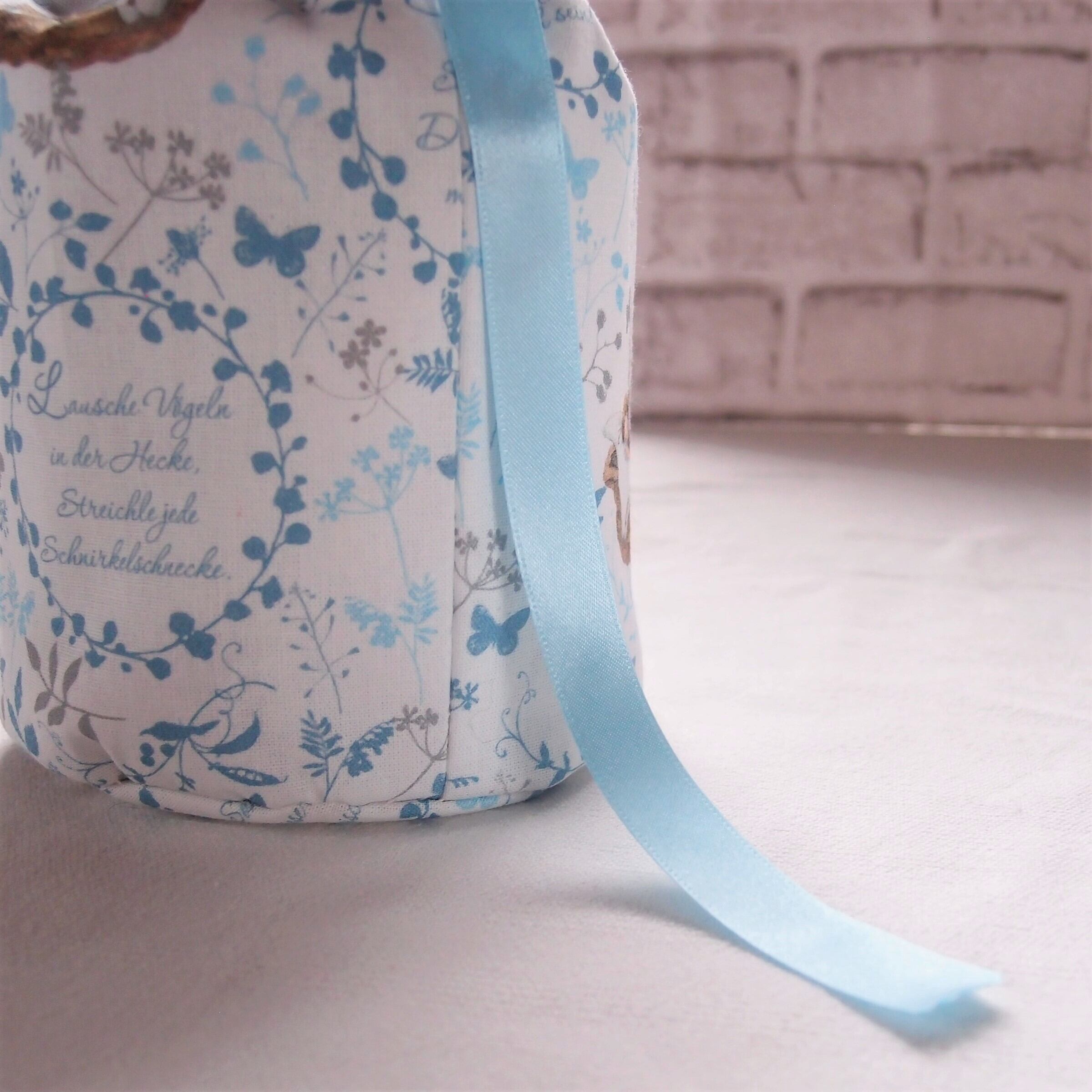 内布はわずかにくすんだ水色のドット柄、リボンはクリアな水色を選びました。
