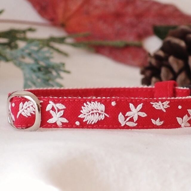 #刺繍 #首輪 #クリスマス #葉 #ひいらぎ #花 #猫 #保護猫 #寄付 #家族 #かわいい #おしゃれ #プレゼント #限定
